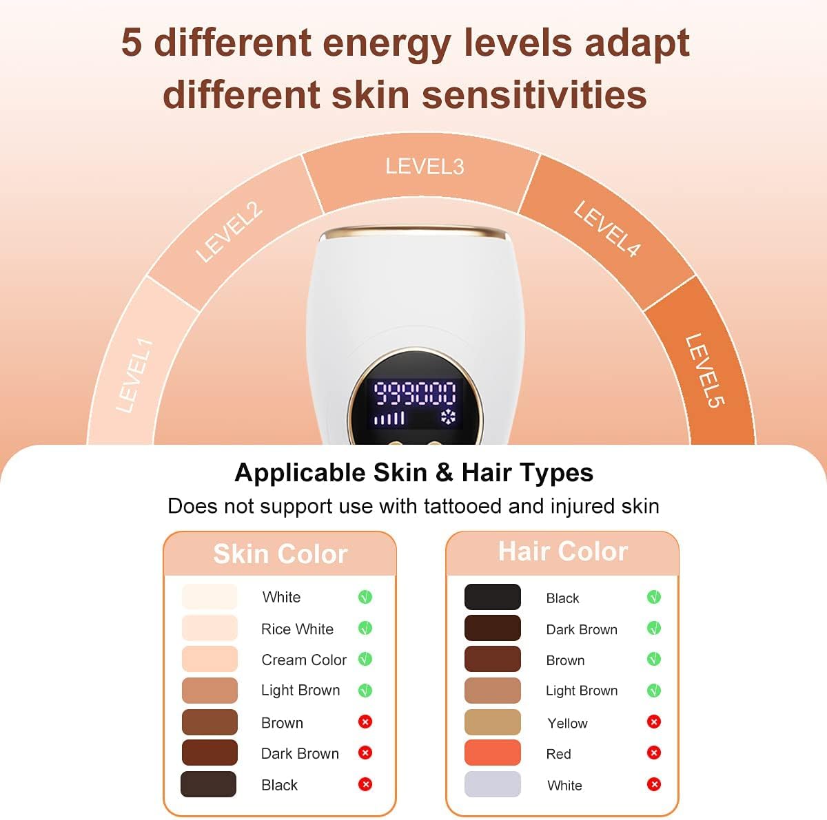 Ice Cold IPL Hair Removal Device – 990,000 Flashes | 5 Levels | Automatic & Manual Mode